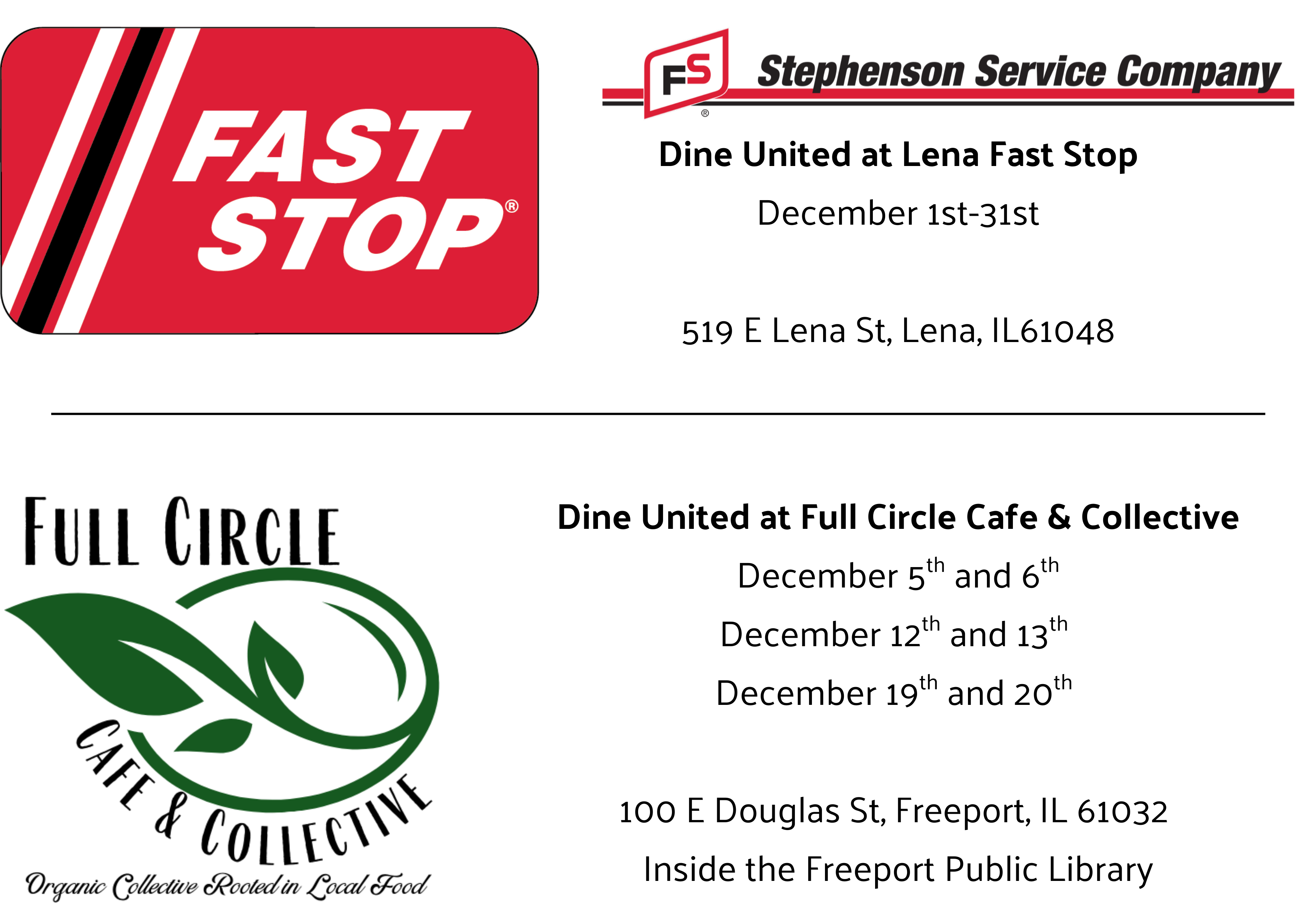• United Way of Northwest Illinois will promote your restaurant across our website, social media, and newsletters.